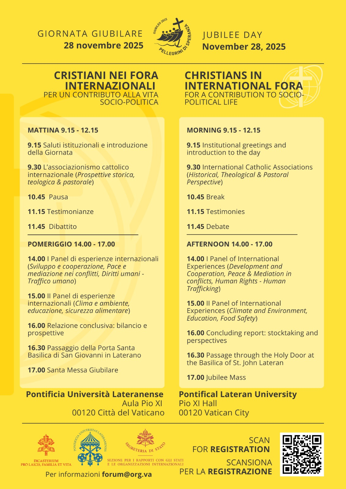 - Venue: Pontifical Lateran University – Pio XI Hall