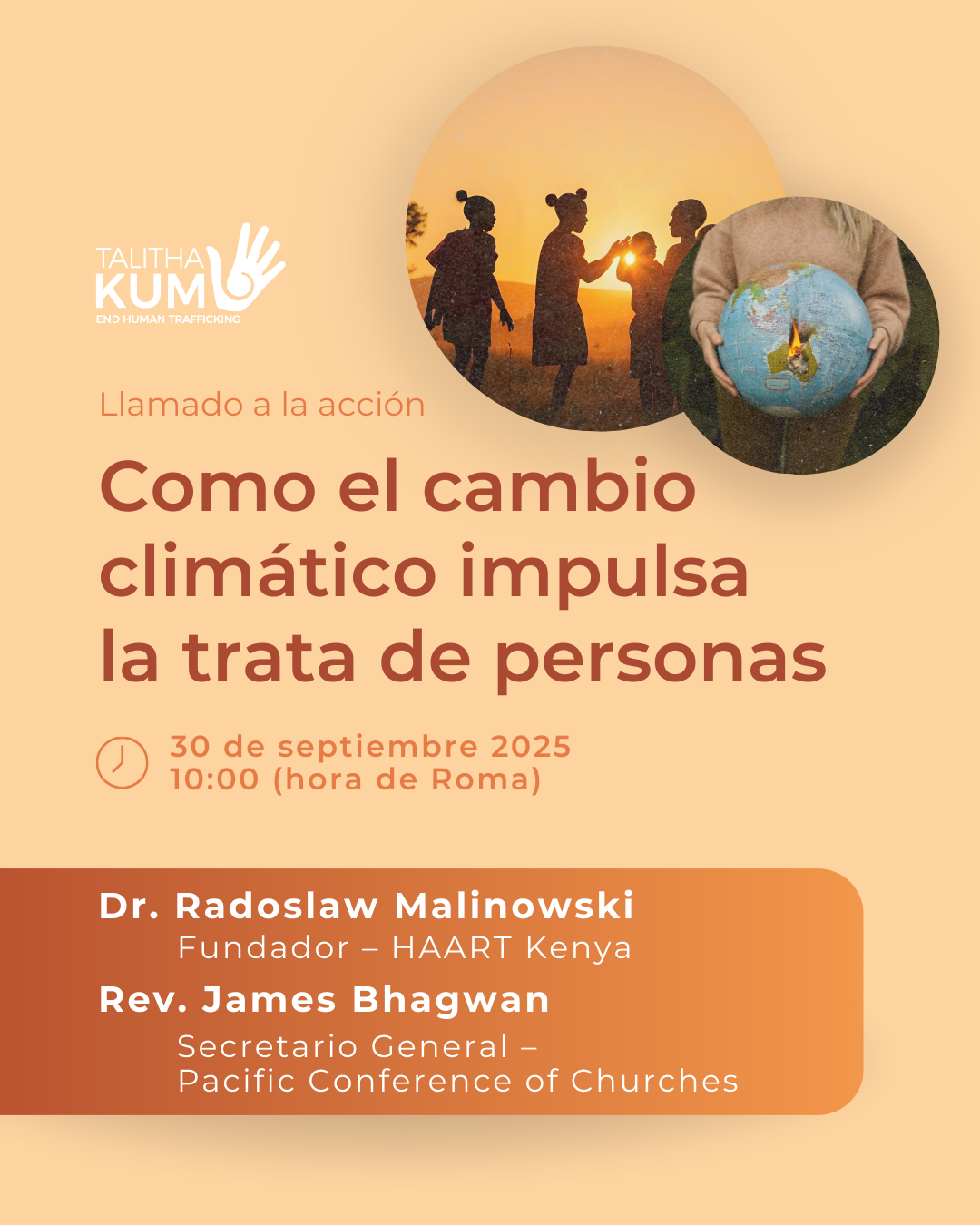 Durante este encuentro reflexionaremos sobre cómo el cambio climático está aumentando la vulnerabilidad de las poblaciones más frágiles, favoreciendo situaciones de explotación y trata de personas.