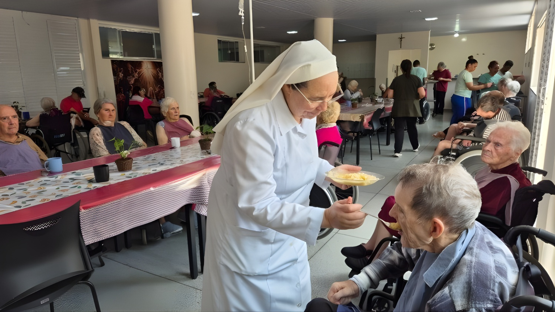 En mission auprès des personnes âgées depuis plus de 30 ans, sœur Denise Cristina est infirmière et directrice de l’œuvre. Malgré toutes les tâches administratives et les engagements nécessaires pour assurer les activités de la mission, la religieuse ne cesse de rendre visite aux hôtes pendant la journée, les aidant à se nourrir et à se soigner. Selon elle, développer un regard attentif est fondamental: «Les petites choses font une grande différence dans la vie des personnes âgées. Souvent, elles ne peuvent plus parler, elles souffrent, elles veulent un verre d’eau et ne peuvent pas le demander».