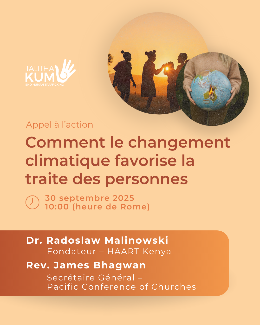Au cours de cette rencontre, nous réfléchirons à la manière dont le changement climatique accroît la vulnérabilité des populations les plus fragiles, favorisant les situations d’exploitation et de traite humaine.